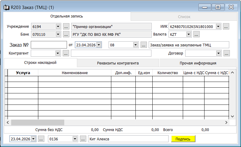| Контрагент | Указать код контрагента | Укажите код контрагента | 10 знаков | |||