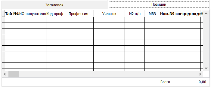 Вкладка Позиции.