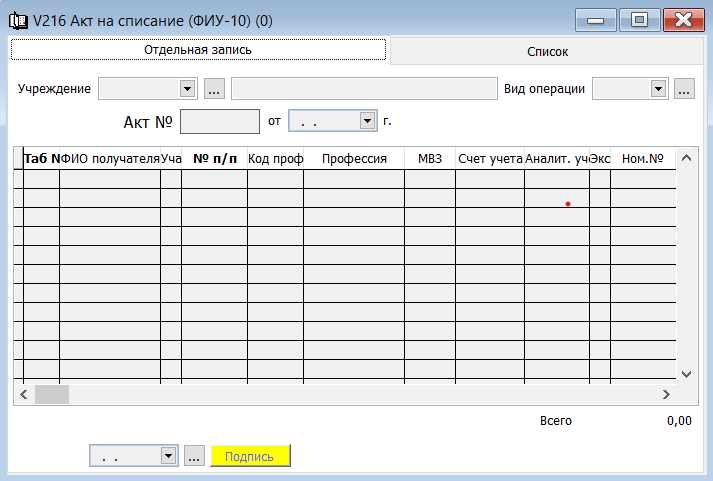 Нажатая кнопка означает, что документ подписан и влияет на данные в учёте. Неподписанный документ отражается во вкладке список жёлтым цветом. |
