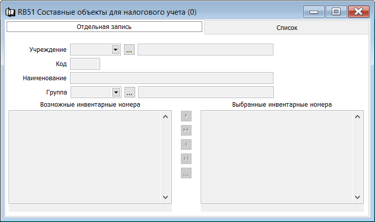 | Возможные инвентарные номера | Указать инвентарные номера, которые можно добавить в список для сводного объекта | |||||