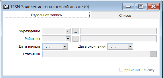 | Признак "Применить льготу" | Признак устанавливается если у работника имеется право на налоговую льготу. |