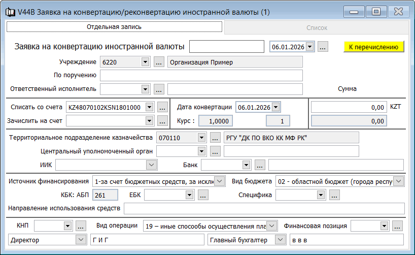 Заявка на конвертацию иностранной валюты |