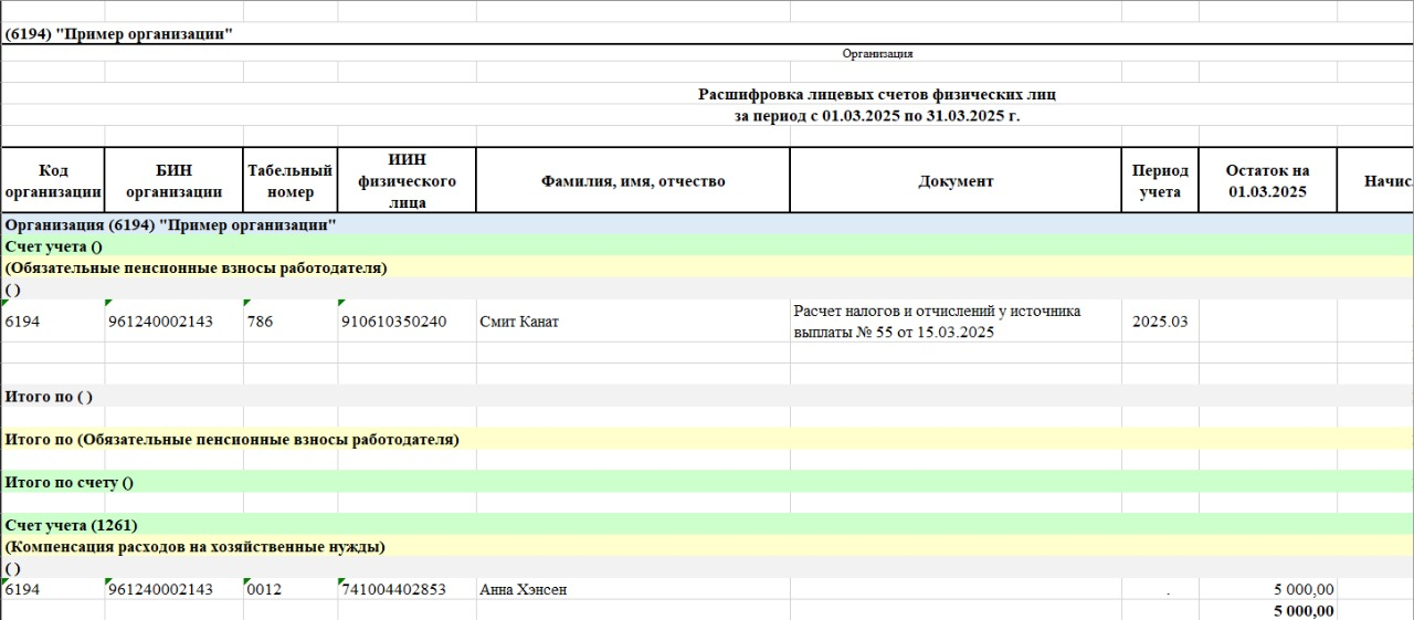 А516: Расшифровка лицевых счетов физических лиц по документам