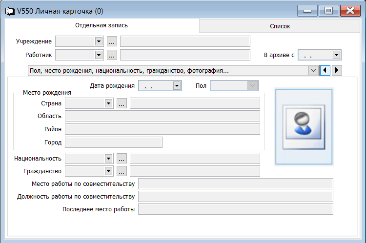 Личная карточка предназначена для отражения всех необходимых данных, связанных с работником. Карточка имеет несколько вкладок.