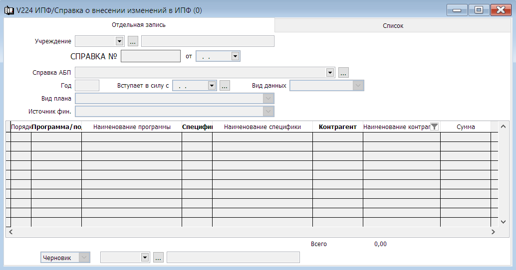 Как увидеть создана ли Отделом Образования Справка о внесении изменений ИПФ? Раздел учета "Бюджетирование" - Документы - Справка о внесении изменений ИПФ - Новая запись - Просмотр через бегунок "Заявка АБП". Если имеется перечень, то выбираете необходимый. Если не выходит, то не создана значит |